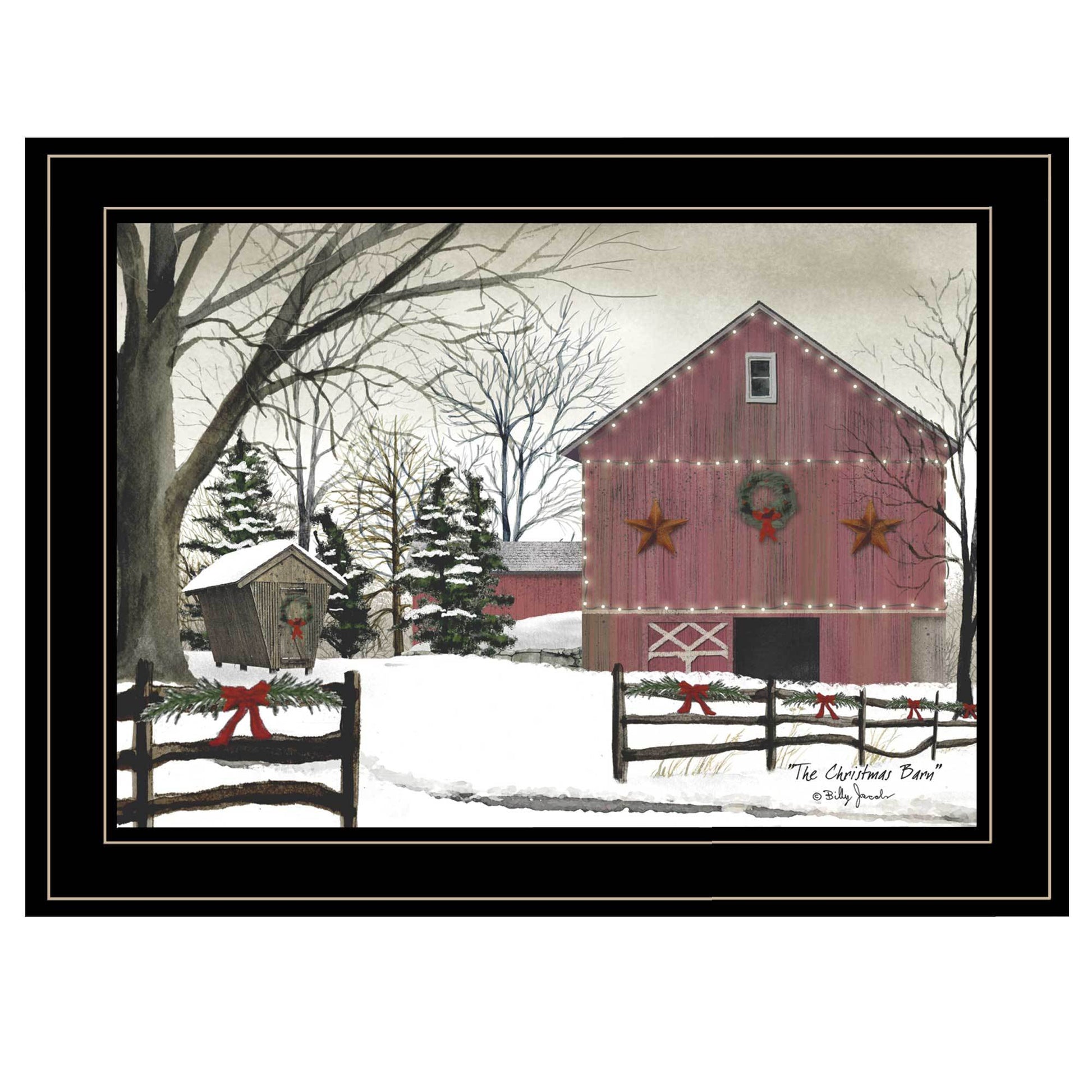'Christmas Barn' by Billy Jacobs Ready to Hang Framed Print, Black Frame